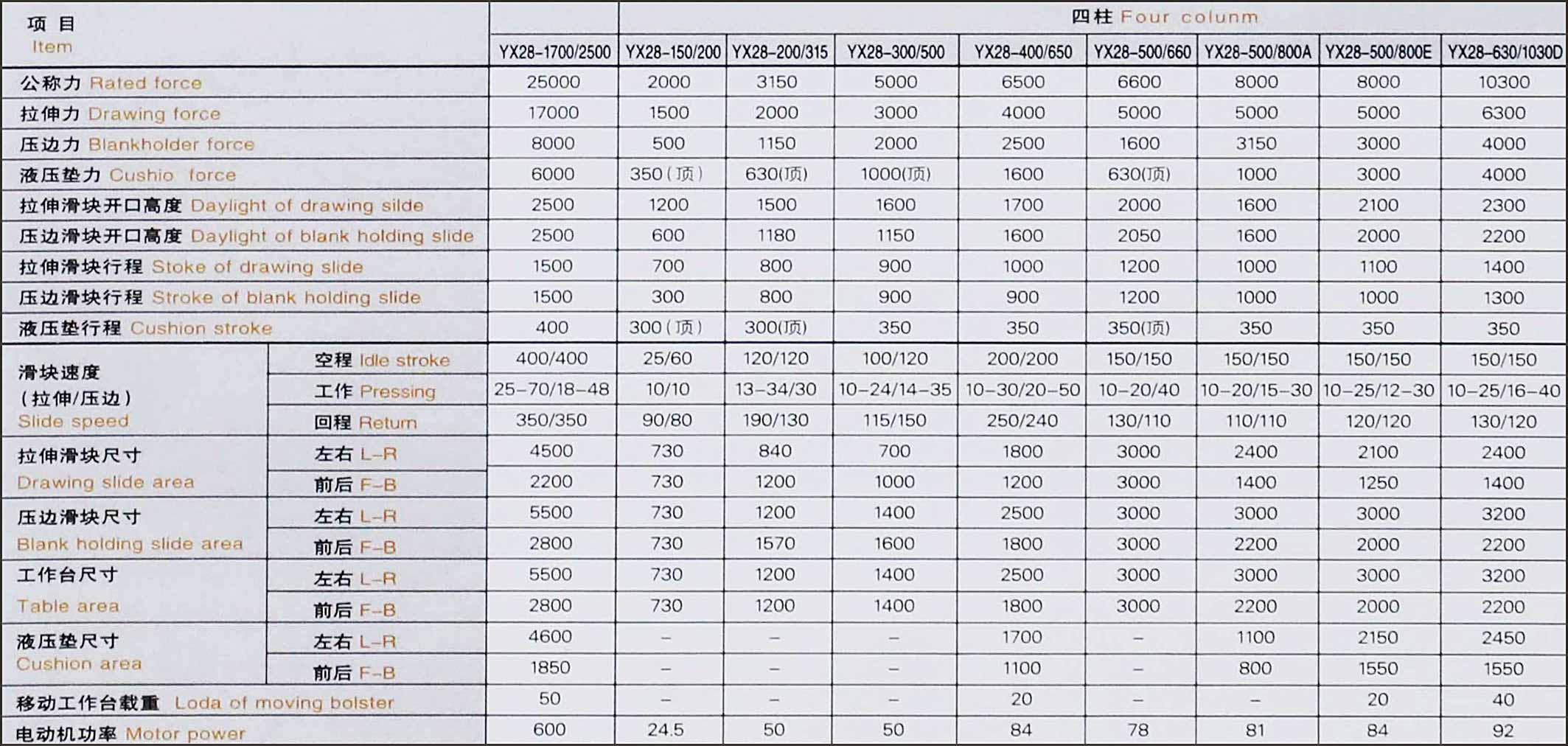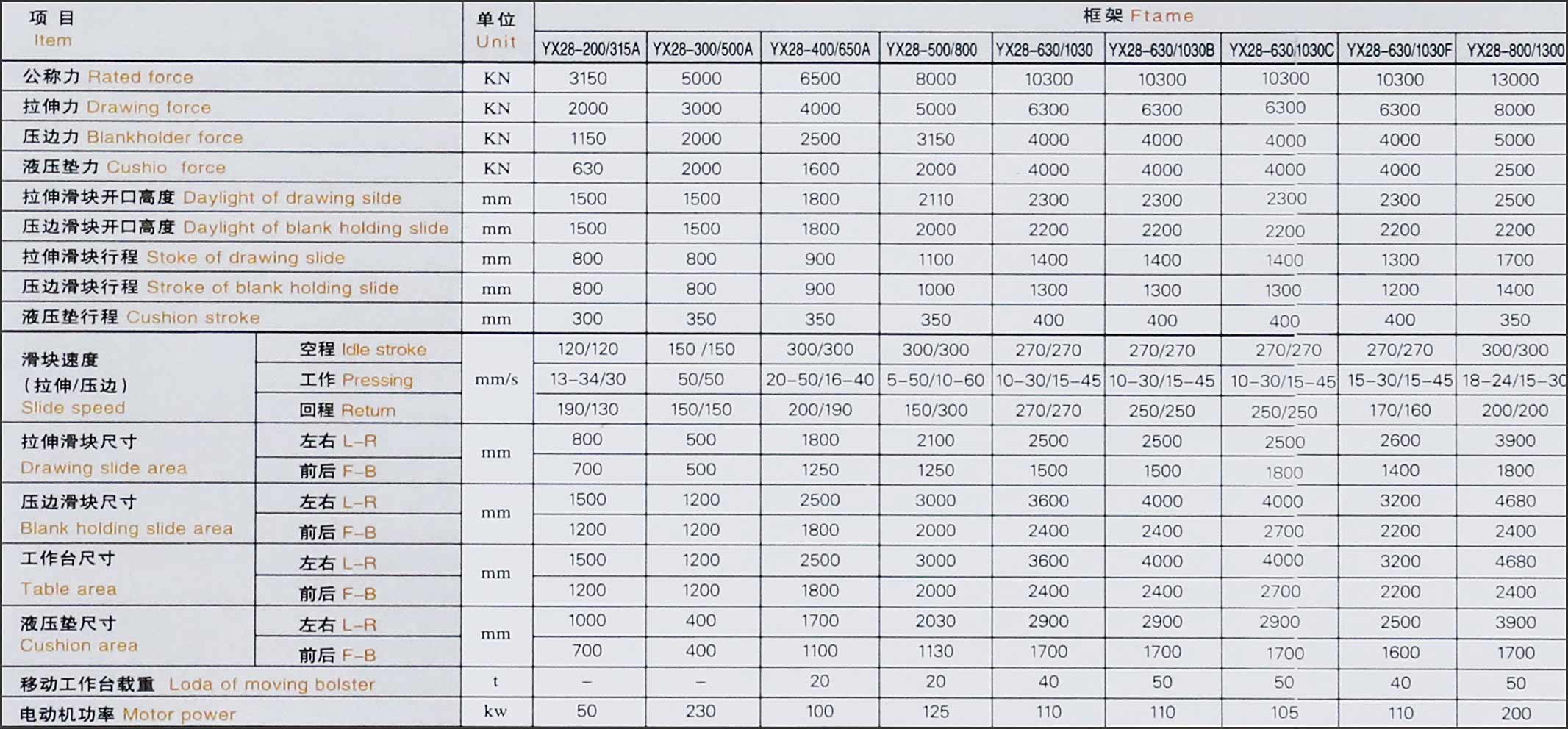 | 移動工作臺 | 沖裁緩沖裝置 | 壓邊滑塊,液壓墊死角分別調(diào)壓裝置(拉伸不對稱零件) | 光電保護裝置 | 換模用浮動導(dǎo)軌和滾動托架 |